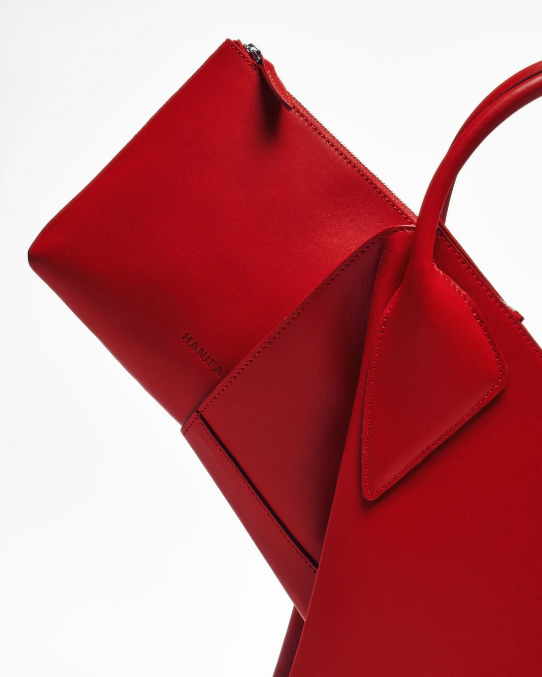 Handcrafted with 100% calf leather, fastened by a magnetic closure, and lined with alcantara. She is an exemplary everyday bag.